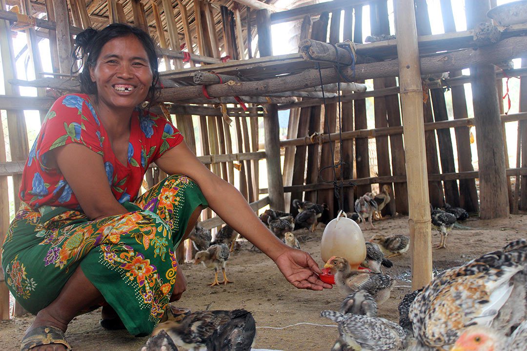 In addition to the chickens, Srey attended three rounds of training courses where she learned how to best take care of them. She knows how to make homemade chicken feed out of natural resources she can gather near her home. She knows how to line the chicken coop with cloth sacks to keep baby chicks warm when it freezes, and to spray their area with water in the heat to keep them cool. Each summer, she gives the chickens a dose of vaccine to keep them from getting sick. She understands the characteristics of her chickens, can respond when they need additional care, and is attentive to keeping them fed, watered and healthy.
