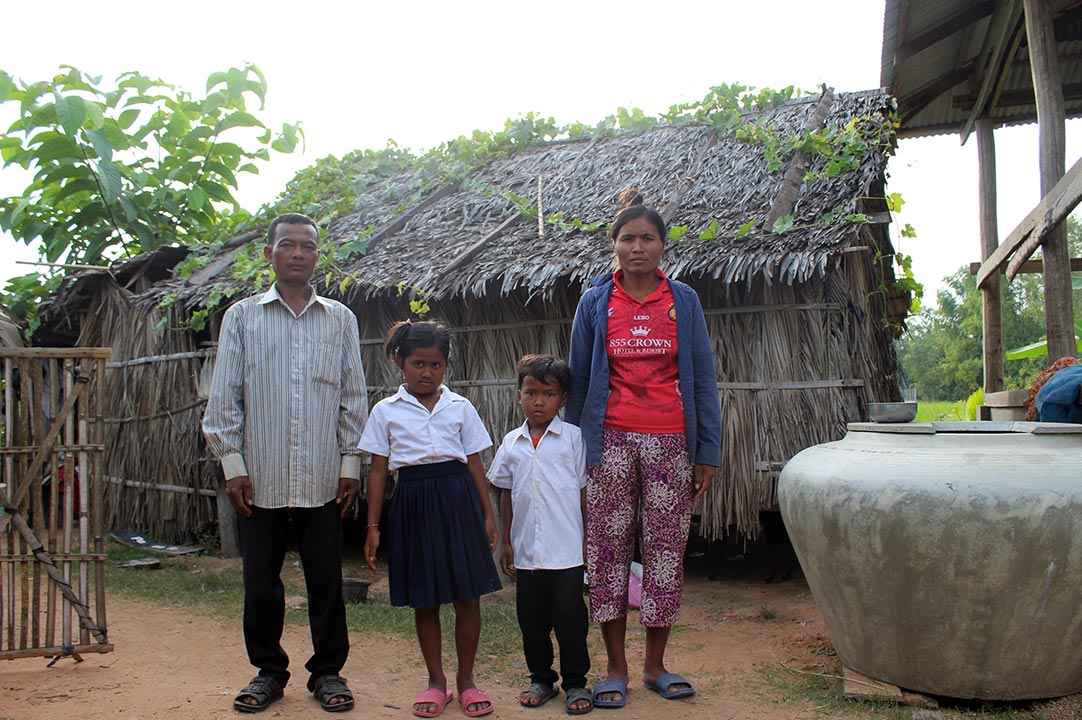 Srey and her husband have two children, 13-year-old Sophal and 10-year-old Veha. When we first met them, they were living in deep poverty in rural Cambodia. Their tiny house was dilapidated, with a leaky roof and no toilet. Their drinking water was dirty and often got them sick. They grew rice on their small plot of land, but they only had enough for five months out of the year. They went hungry the rest of the time.