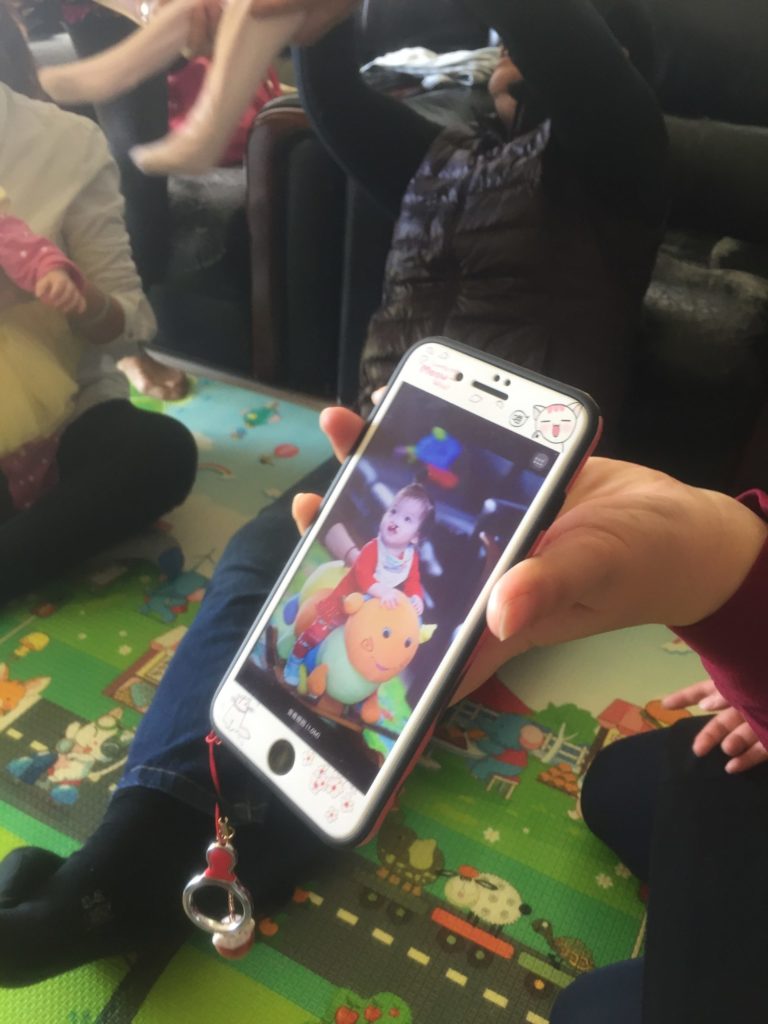 The apartment is small — just six rooms total: a large living room with a picture window looking out over the city with a small, industrial kitchen attached. Down a short hall, there’s one staff bathroom and a single bedroom with three sets of bunk beds that all the nannies share. There’s also a small office and the children’s bedroom, where eight cribs fill the tiny bedroom. Unlike most care centers, though, children are only in their cribs when it’s time to sleep. Otherwise, they are playing and exploring in the matted, toddler-safe living room.