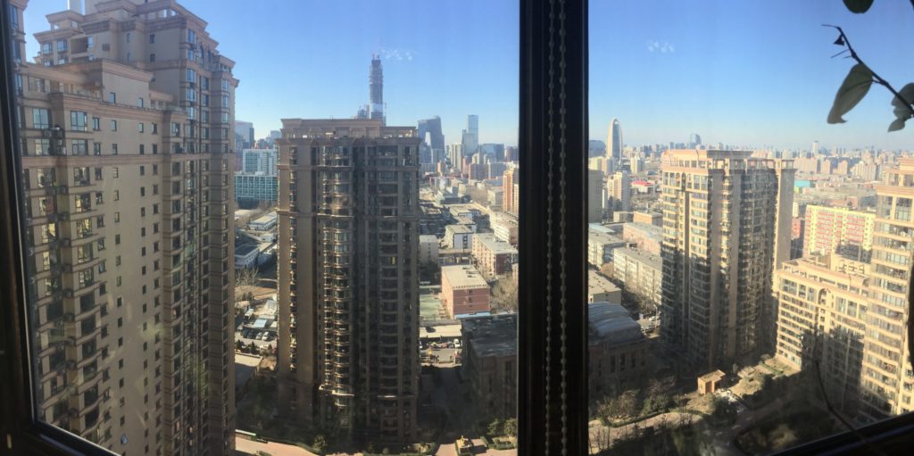 It’s a rare and beautiful blue-sky day — cold and dry, and free of the usual smog, and from the main windows, a view of towering buildings expands far beyond where the eye can see.