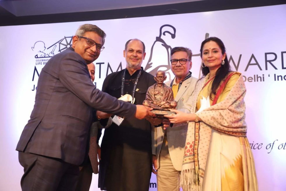 nancy kim and family holding flowers at ceremony to receive harry holt award