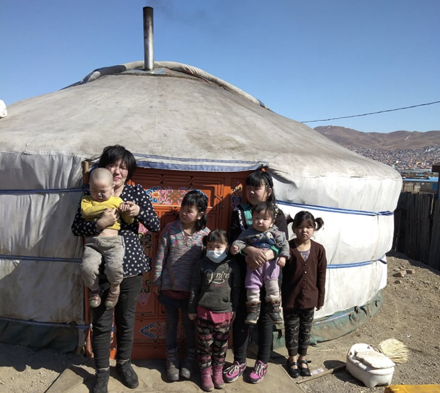 The family lives in a traditional “ger” dwelling near the city garbage dump in Ulaanbaatar.