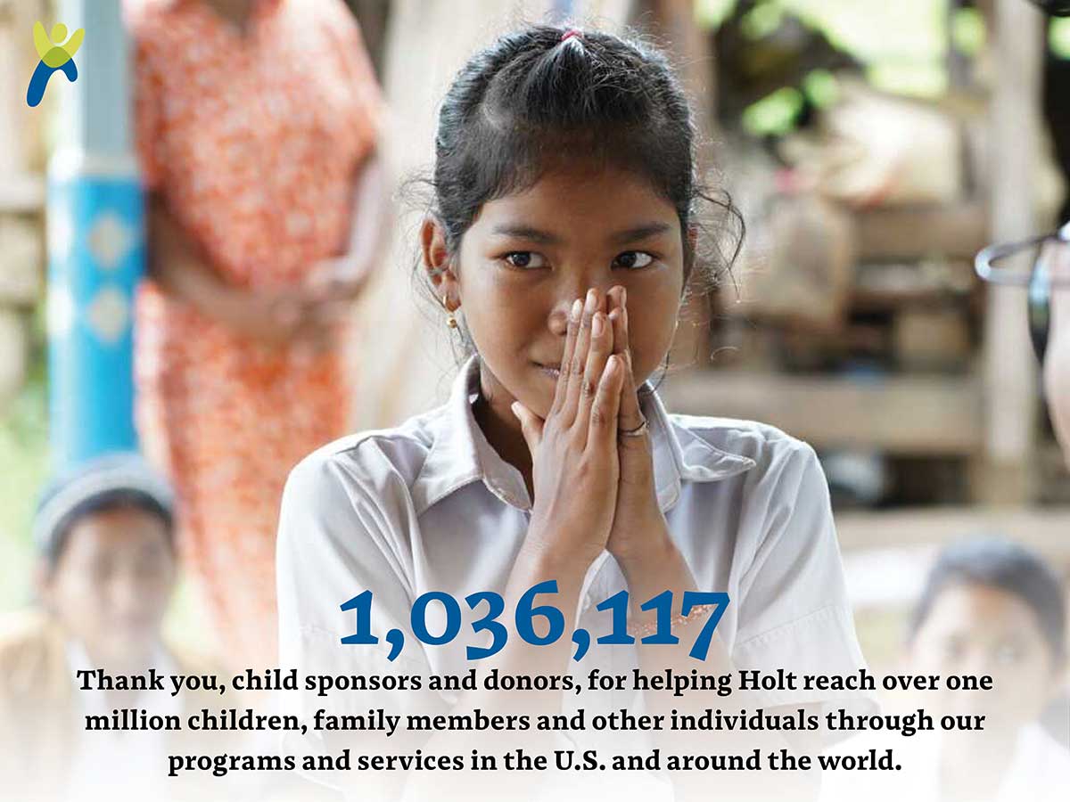 In 2021, you helped reach an incredible milestone – over one million children, family members and other individuals reached through Holt programs and services in the U.S. and around the world. Through your generous and heartfelt giving, you provided direct services to thousands of orphaned and vulnerable children — including everything from school scholarships to warm clothing to gifts of livestock that help families nourish their children and grow their income.