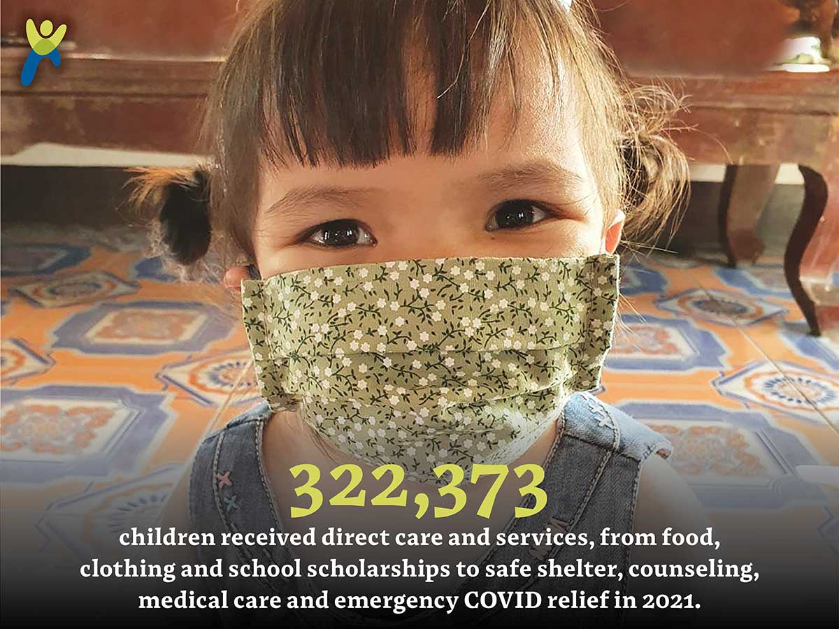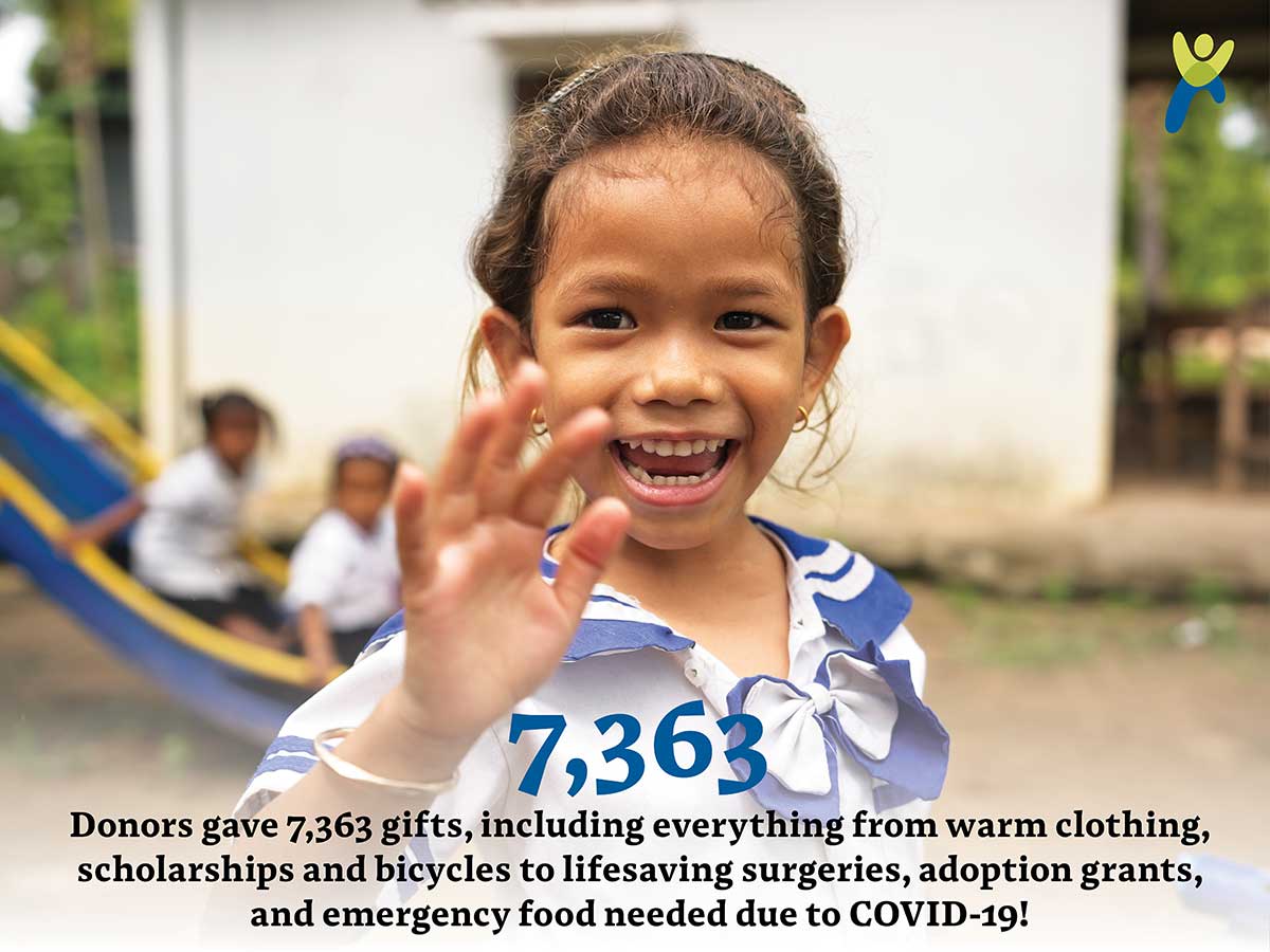 But because of your kind giving this past year, over 3,520 children living in orphanages, group homes or foster families received food, clothing, medical care, safe places to live and nurturing care from devoted caregivers. You helped keep care facilities clean and safe, preventing the spread of COVID-19, and provided masks and sanitizers so children and caregivers could safely venture out to attend medical check-ups or therapy appointments. Your gifts also supported advocacy efforts to help children reunite with their families or join families through adoption.