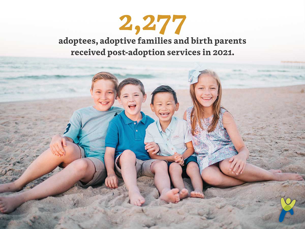 For every child and family joined through adoption, Holt offers lifelong post-adoption services. By supporting Holt, donors help to ensure that adult adoptees can access copies of their adoption file, receive help and support with a birth family search, have important citizenship questions answered or receive counseling to cope with adoption-related issues that come up throughout their lives. When parenting issues arise that may or may not be adoption-related, adoptive parents can also receive help and support through our Post Adoption Coaching & Education program. Birth parents can reach out to Holt’s post-adoption team for support and counseling.  And every summer, youth adoptees have the opportunity to attend Holt Adoptee Camp — a weeklong overnight camp where they can connect with other adoptees and discuss issues surrounding adoption. After two years of virtual camp, Holt’s in-person camp resumed in summer 2022 with 213 campers, ages 9-17, and adult adoptee counselors attending across the country!