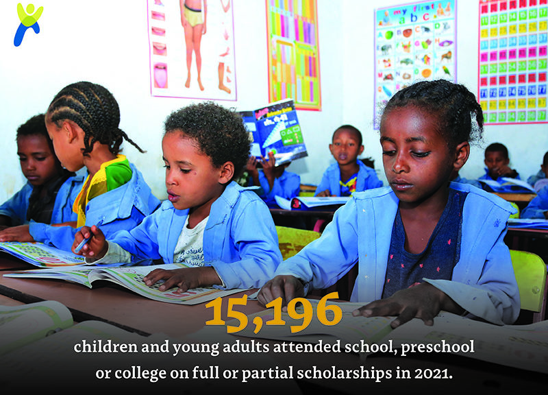 When you provide the supplies, uniforms, books and scholarships kids need to attend school, you empower them to one day escape poverty. You help protect them from child labor, child marriage, child trafficking and child abuse. And you give them the tools to not only lift themselves out of poverty, but to lift their families and communities up and out as well. In 2021, your generous giving made it possible for children to safely return to the classroom or continue their studies from home. You provided everything from crayons and coloring books for preschoolers to laptops for students attending university on scholarship.